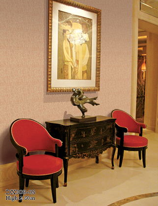 2、织物墙布,又称艺术墙布。是用棉、麻等植物纤维或与化学纤维混合织成,拉力较好,颜色典雅文静,天然感强,透气性好。但是外表简单起毛,又不能擦拭,宜安置在接待室或书房等安静祥 和的当地。